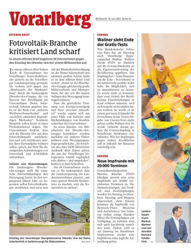 In einem offenen Brief begehren 18 Unternehmen gegen den Einstieg der Illwerke vkw bei einem Mitbewerber auf.