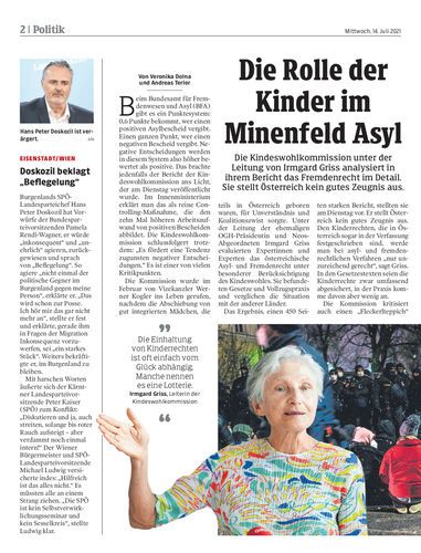 Mitten in eine spannungsgeladene Asyl- und Fremdenrechtsdebatte legt die Kindeswohlkommission von Irmgard Griss ihren Endbericht vor. Er gibt Anlass zu Hoffnung.