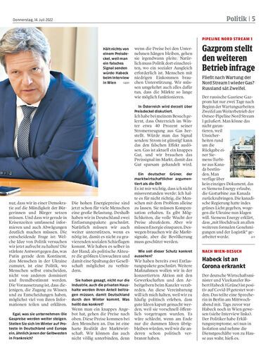 Alles müsse getan werden, damit die Gaskrise nicht zur Spaltung der Gesellschaft führe, warnt der deutsche Vizekanzler Robert Habeck. Von Rainer Nowak und Christoph Zotter/Die Presse