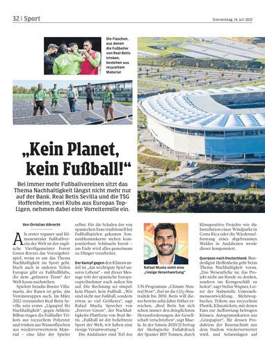 Bei immer mehr Fußballvereinen sitzt das Thema Nachhaltigkeit längst nicht mehr nur auf der Bank. Real Betis Sevilla und die TSG Hoffenheim, zwei Klubs aus Europas Top- Ligen, nehmen dabei eine Vorreiterrolle ein.