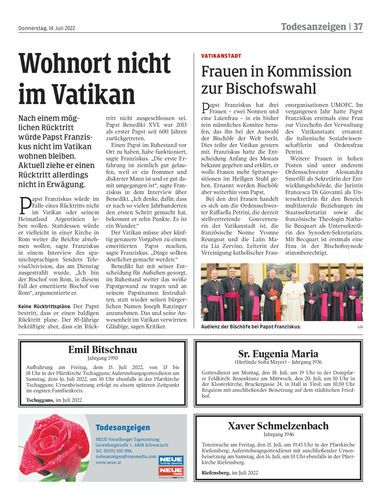 Nach einem möglichen Rücktritt würde Papst Franziskus nicht im Vatikan wohnen bleiben. Aktuell ziehe er einen Rücktritt allerdings nicht in Erwägung.