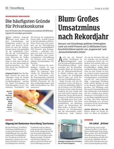 Umsatz von Vorarlbergs größtem Arbeitgeber sank um zwölf Prozent auf 2,3 Milliarden Euro. Geschäftsführer spricht von „Gegenwind“ und „herausfordernden Zeiten“.