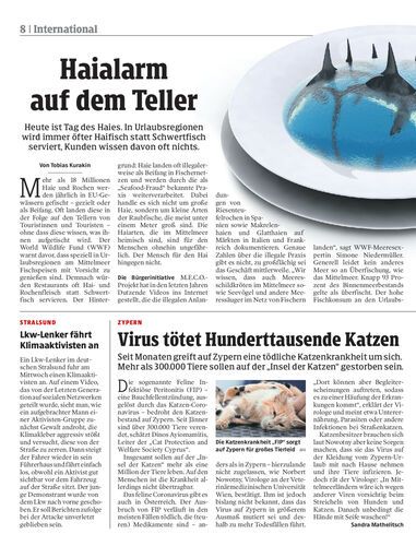 Heute ist Tag des Haies. In Urlaubsregionen wird immer öfter Haifisch statt Schwertfisch serviert, Kunden wissen davon oft nichts.