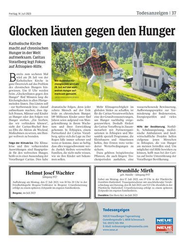 Katholische Kirche macht auf chronischen Hunger in der Welt aufmerksam. Caritas Vorarlberg legt Fokus auf Äthiopien-Hilfe.
