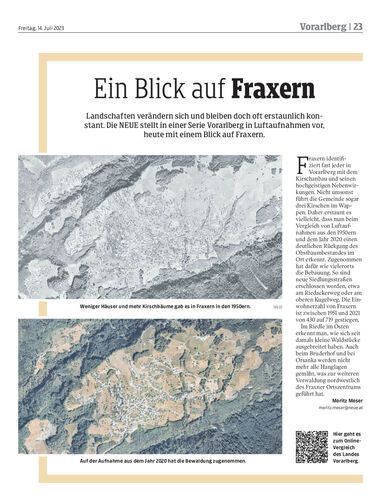 Landschaften verändern sich und bleiben doch oft erstaunlich konstant. Die NEUE stellt in einer Serie Vorarlberg in Luftaufnahmen vor, heute mit einem Blick auf Fraxern.
