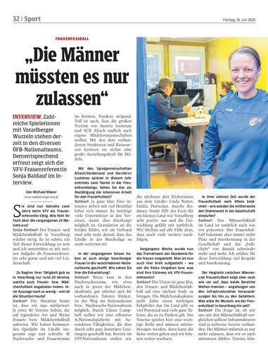 Interview. Zahlreiche Spielerinnen mit Vorarlberger Wurzeln stehen derzeit in den diversen ÖFB-Nationalteams. Dementsprechend erfreut zeigt sich die VFV-Frauenreferentin Sonja Baldauf im Interview.