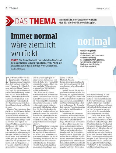 Essay. Die Gesellschaft braucht den Maßstab des Normalen, um zu funktionieren. Aber sie braucht auch das Salz des Verrücktseins. Von Ernst Sittinger