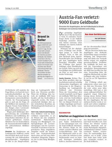 Diversion für Angeklagten, der bei Fußballspiel in Altach Anhänger von Lustenau bedrohte und schlug.