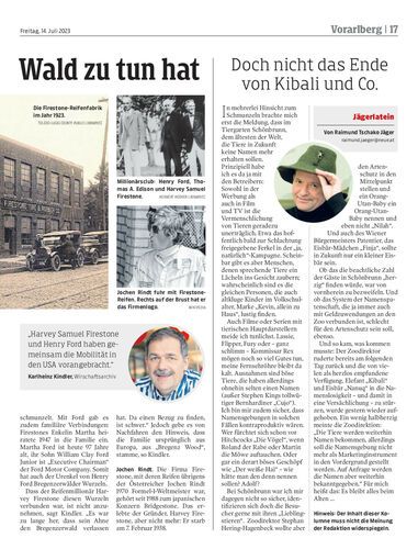 Der Gründer des US-Unternehmens Firestone (Feuerstein) hatte Bregenzerwälder Wurzeln. Er wuchs auf einer Farm auf und zählte später zu den führenden Industriellen der USA.