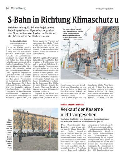 Weichenstellung für S-Bahn-Projekt steht Ende August bevor. Alpenschutzorganisation Cipra befürwortet Ausbau und hofft auf ein „Ja“ vonseiten der Liechtensteiner.