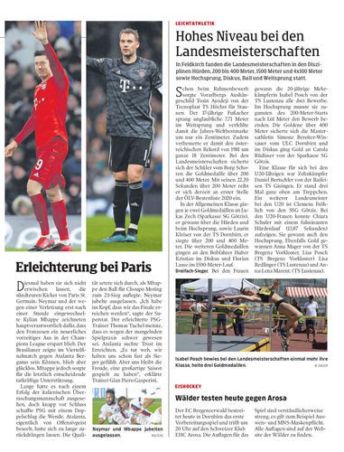 In Feldkirch fanden die Landesmeisterschaften in den Disziplinen Hürden, 200 bis 400 Meter, 1500 Meter und 4x100 Meter sowie Hochsprung, Diskus, Ball und Weitsprung statt.