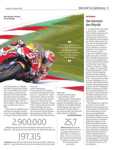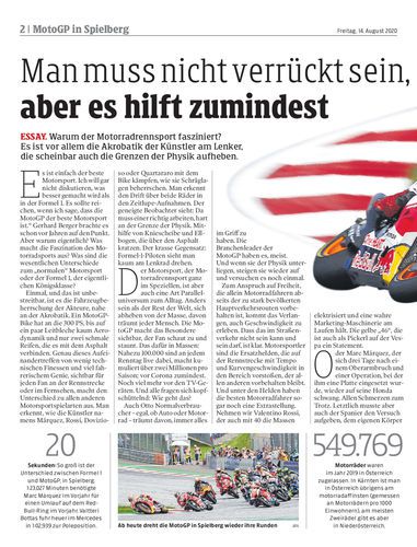 ESSAY. Warum der Motorradrennsport fasziniert? Es ist vor allem die Akrobatik der Künstler am Lenker, die scheinbar auch die Grenzen der Physik aufheben.