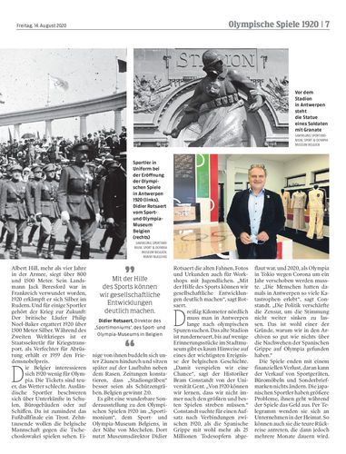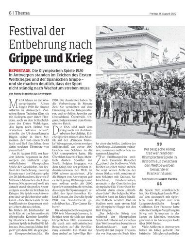 Reportage. Die Olympischen Spiele 1920 in Antwerpen standen im Zeichen des Ersten Weltkrieges und der Spanischen Grippe – und sie machen deutlich, dass der Sport nicht ständig nach Wachstum streben muss. Von Ronny Blaschke aus Antwerpen