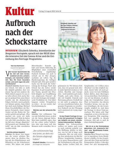 Interview. Elisabeth Sobotka, Intendantin der Bregenzer Festspiele, sprach mit der NEUE über die intensive Zeit der Corona-Krise und die Entstehung des Festtage-Programms.