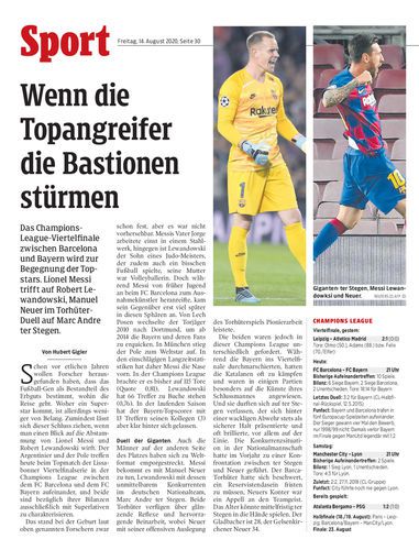 Das Champions-League-Viertelfinale zwischen Barcelona und Bayern wird zur Begegnung der Topstars. Lionel Messi trifft auf Robert Lewandowski, Manuel Neuer im Torhüter-Duell auf Marc Andre ter Stegen.