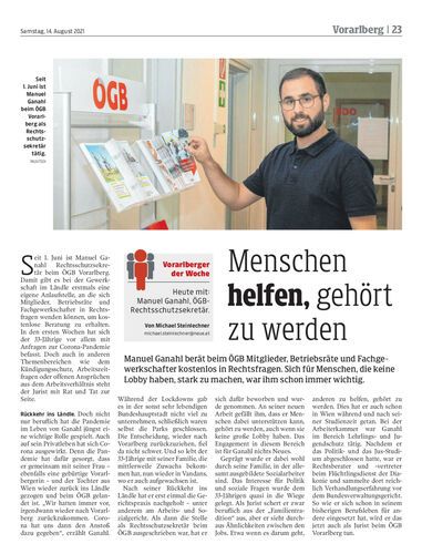 Manuel Ganahl berät beim ÖGB Mitglieder, Betriebsräte und Fachgewerkschafter kostenlos in Rechtsfragen. Sich für Menschen, die keine Lobby haben, stark zu machen, war ihm schon immer wichtig.