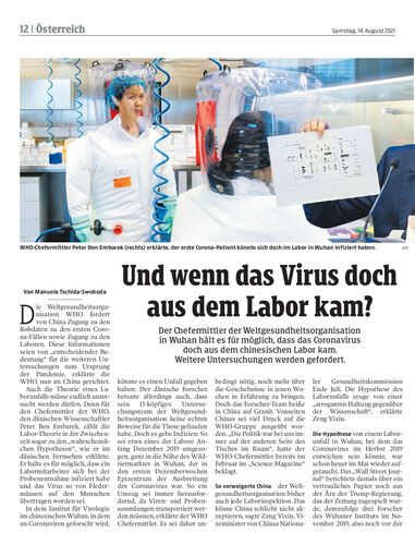 Der Chefermittler der Weltgesundheitsorganisation in Wuhan hält es für möglich, dass das Coronavirus doch aus dem chinesischen Labor kam. Weitere Untersuchungen werden gefordert.