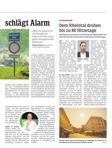 Die Temperaturzunahme in Vorarlberg seit 1880 beträgt zwei Grad. Bis Ende des Jahrhunderts drohen bis zu 80 Hitzetage.