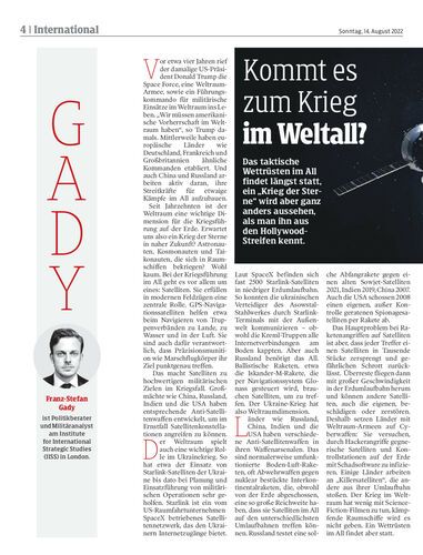 Das taktische Wettrüsten im All findet längst statt, ein „Krieg der Sterne“ wird aber ganz anders aussehen, als man ihn aus den Hollywood- Streifen kennt.