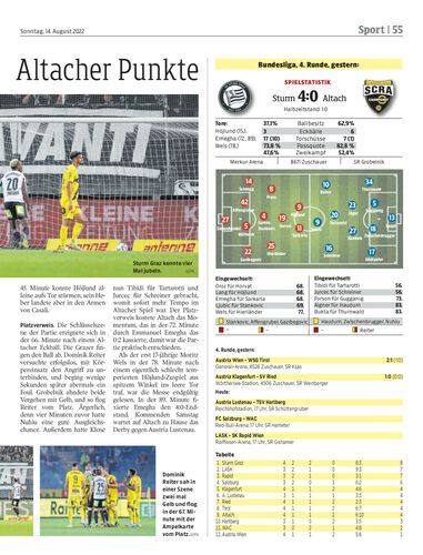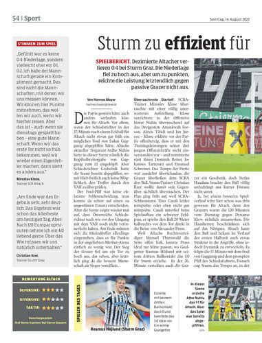 Spielbericht. Dezimierte Altacher verlieren 0:4 bei Sturm Graz. Die Niederlage fiel zu hoch aus, aber um zu punkten, reichte die Leistung letztendlich gegen passive Grazer nicht aus.