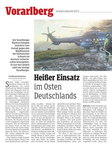 Der Vorarlberger Markus Stengele berichtet vom Kampf gegen den Waldbrand in der Sächsischen Schweiz im deutsch-tschechischen Grenzgebiet. Er war dort jedoch nicht der einzige Vorarlberger.
