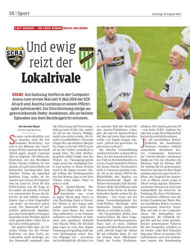 Essay. Am Samstag treffen in der Cashpoint-Arena zum ersten Mal seit 9. Mai 2014 der SCR Altach und Austria Lustenau in einem Pflichtspiel aufeinander. Zur Einstimmung einige augenzwinkernde Derby-Anekdoten, die an heitere Episoden aus dem Bezirksgericht erinnern.