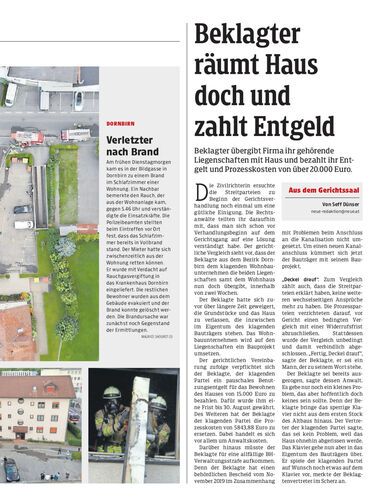 Beklagter übergibt Firma ihr gehörende Liegenschaften mit Haus und bezahlt ihr Entgelt und Prozesskosten von über 20.000 Euro.
