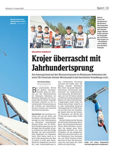 Am Sonntag fand auf den Wasserschanzen im Rheinauen Hohenems der erste FIS-Freestyle-Aerials-Wettkampf in der Geschichte Vorarlbergs statt.