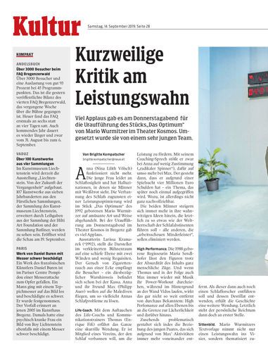Viel Applaus gab es am Donnerstagabend für die Uraufführung des Stücks„Das Optimum“ von Mario Wurmitzer im Theater Kosmos. Umgesetzt wurde sie von einem sehr jungen Team.