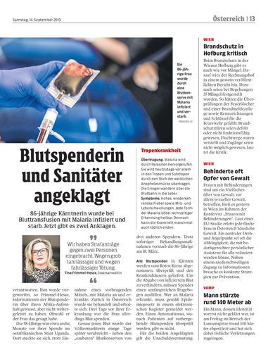 86-jährige Kärntnerin wurde bei Bluttransfusion mit Malaria infiziert und starb. Jetzt gibt es zwei Anklagen.