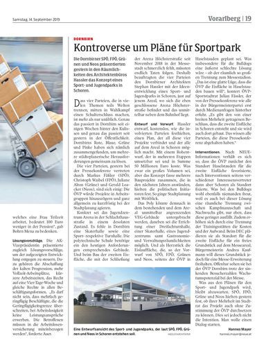 Die Dornbirner SPÖ, FPÖ, Grünen und Neos präsentierten gestern in den Räumlichkeiten des Architektenbüros Hassler das Konzept eines Sport- und Jugendparks in Schoren.