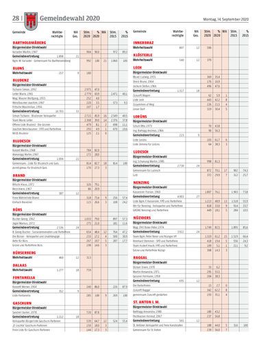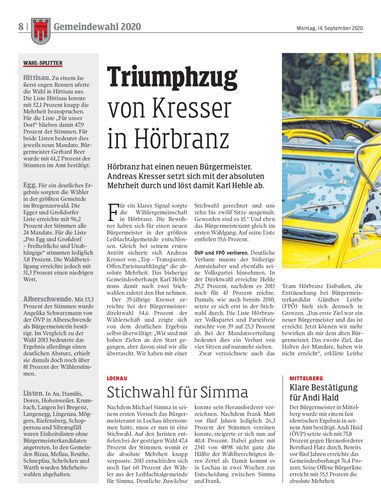 Gemeindewahl. Das Bürgermeisteramt in Bregenz, Feldkirch und Bludenz ist hart umkämpft. In allen drei Städten kommt es zu Stichwahlen. In Hohenems setzte sich hingegen Dieter Egger klar durch. Seiten 4/5, 14/15, 16/17, 20/21 Streibert