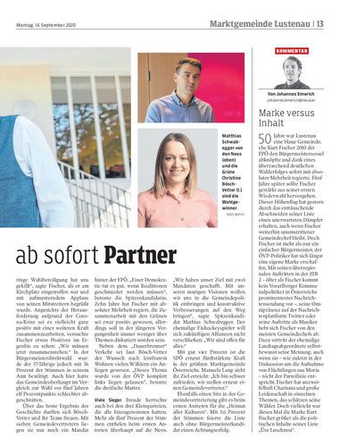 Andrea Kaufmann (ÖVP) bleibt im Chefsessel, Grüne werden zweitstärkste Kraft und bekommen einen zweiten Stadtrat, Verlierer sind Sozialdemokraten und FPÖ.