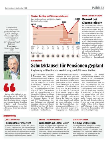 Regierung will bei Pensionserhöhung um 9,7 Prozent bleiben.