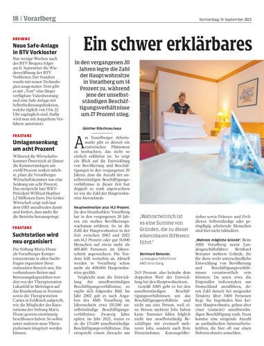 In den vergangenen 20 Jahren legte die Zahl der Hauptwohnsitze in Vorarlberg um 14 Prozent zu, während jene der unselbstständigen Beschäftigungsverhältnisse um 27 Prozent stieg.
