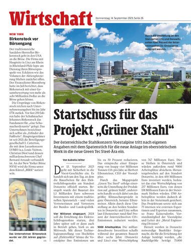 Der österreichische Stahlkonzern Voestalpine tritt nach eigenen Angaben mit dem Spatenstich für die neue Anlage im obersteirischen Werk in die neue Green Tec Steel-Ära ein.