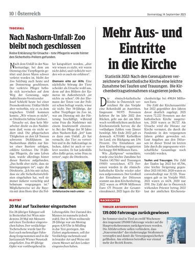 Statistik 2022: Nach den Coronajahren verzeichnete die katholische Kirche eine leichte Zunahme bei Taufen und Trauungen. Die Kirchenbeitragseinnahmen stagnieren jedoch.