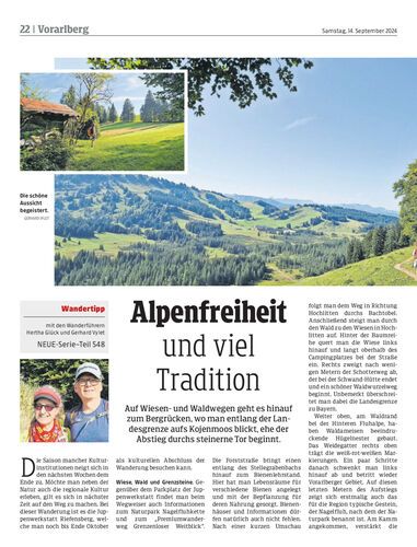 Auf Wiesen- und Waldwegen geht es hinauf zum Bergrücken, wo man entlang der Landesgrenze aufs Kojenmoos blickt, ehe der Abstieg durchs steinerne Tor beginnt.