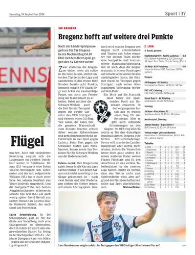 Nach der Länderspielpause geht es für SW Bregenz heute Nachmittag (14.30 Uhr) mit dem Heimspiel gegen den SV Lafnitz weiter.