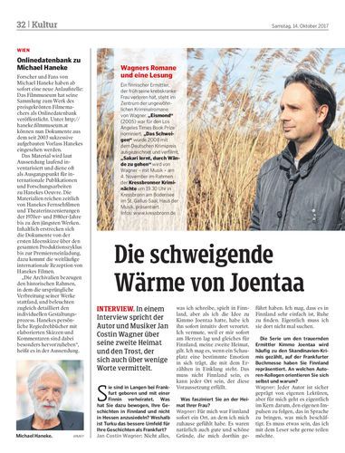 Interview. In einem Interview spricht der Autor und Musiker Jan Costin Wagner über seine zweite Heimat und den Trost, der sich auch über wenige Worte vermittelt.