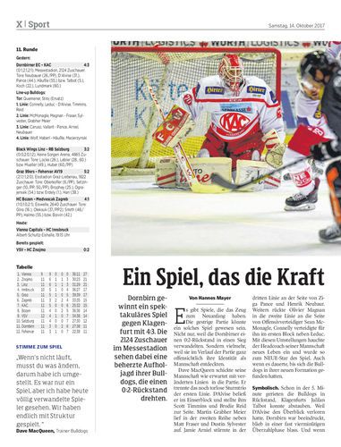 Dornbirn gewinnt ein spektakuläres Spiel gegen Klagenfurt mit 4:3. Die 2124 Zuschauer im Messestadion sehen dabei eine beherzte Aufholjagd ihrer Bulldogs, die einen 0:2-Rückstand drehten.