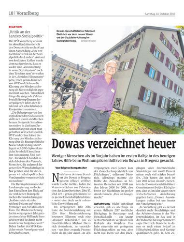 Weniger Menschen als im Vorjahr haben im ersten Halbjahr des heurigen Jahres Hilfe beim Wohnungslosenhilfsverein Dowas in Bregenz gesucht.