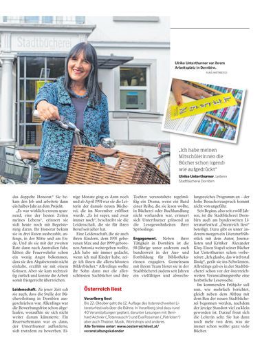 „Österreich liest“ heißt eine bundesweite Veranstaltungsreihe, die kommende Woche wieder über die Bühne geht. Eine, die das Lesen zu ihrem Lebensinhalt gemacht hat, ist die Leiterin der Dornbirner Stadtbücherei Ulrike Unterthurner (58).