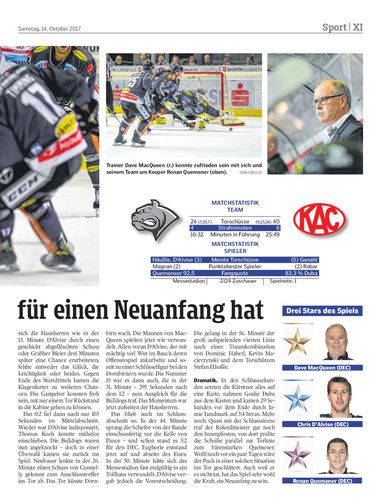 32:22-(16:10)-Kantersieg für die Harder. 2300 Fans erleben eine Abfuhr für den Rekordmeister. Aus kollektiver Paradeleistung ragen Goalie Doknic und Kapitän Schmid hervor.