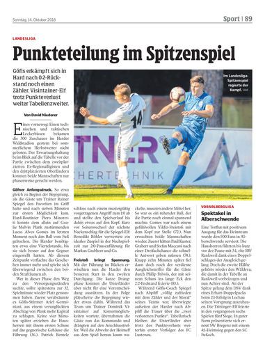 Göfis erkämpft sich in Hard nach 0:2-Rückstand noch einen Zähler. Visintainer-Elf trotz Punkteverlust weiter Tabellenzweiter.