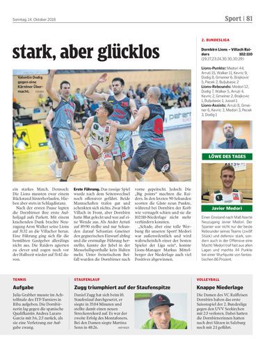 Stark gespielt, aber trotzdem verloren: Die Dornbirn Lions unterliegen beim Saisonauftakt den Villach Raiders mit 102:110.