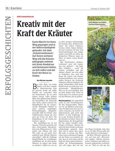 Karin Mattivi ist ihren Weg gegangen und in der Selbstständigkeit gelandet, mit dem „Kräuterwerkraum“. Auf ihrem weiteren Weg will die Kräuterpädagogin anderen mit ihren Produkten und Seminaren helfen, zu sich selbst und der Kraft der Natur zu finden.