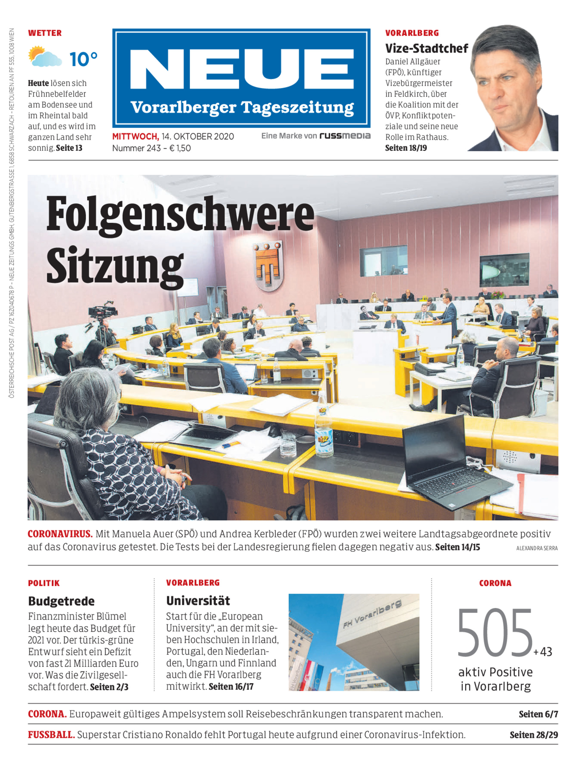 Coronavirus. Mit Manuela Auer (SPÖ) und Andrea Kerbleder (FPÖ) wurden zwei weitere Landtagsabgeordnete positiv auf das Coronavirus getestet. Die Tests bei der Landesregierung fielen dagegen negativ aus. Seiten 14/15 Alexandra Serra