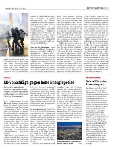 Ab morgen ist für Italiens Arbeitnehmer ein 3-G-Nachweis Pflicht. In Triest formiert sich Protest. Sorgen bereiten auch Neofaschisten, die Corona-Proteste unterwandern.