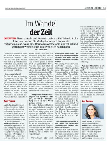 Pharmazeutin und Journalistin Diana Helfrich erklärt im Interview, warum die Wechseljahre noch immer ein Tabuthema sind, wann eine Hormonersatztherapie sinnvoll ist und warum der Wechsel auch positive Seiten haben kann. Von Carmen Oster
